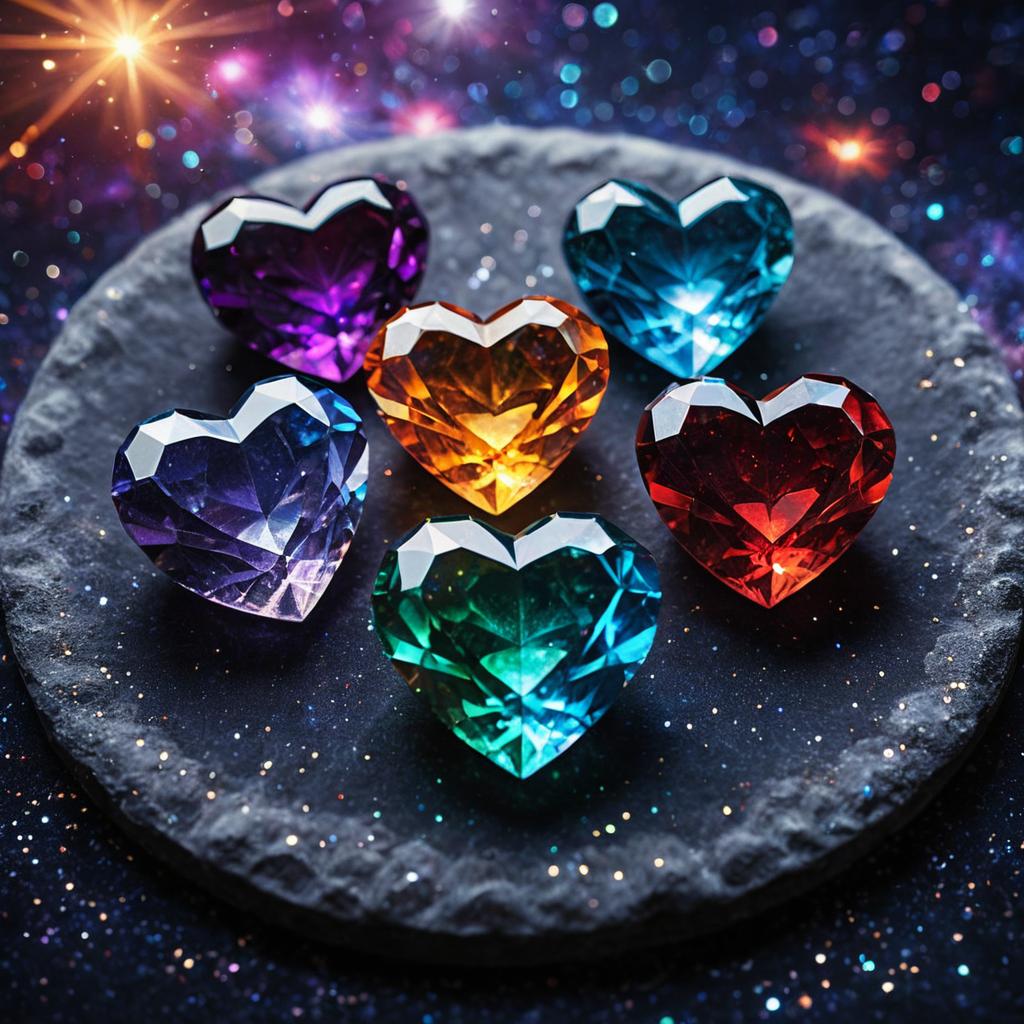 Macro photo, sparkling magical fantasy Magical hearts, made out of transparent multicolored glass, light shines through, magical artifact, very detailed, amazing quality, intricate, cinematic light, highly detail, beautiful, surreal, dramatic, warm colors