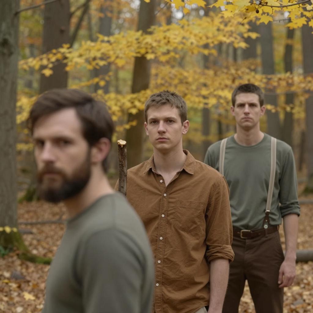Crouching Men on Grassy Hill with Castle