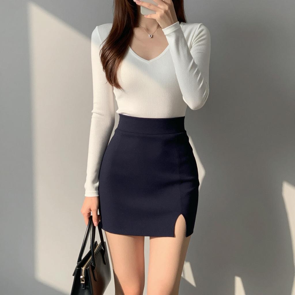 Elegant Woman Capturing Mirror Selfie
