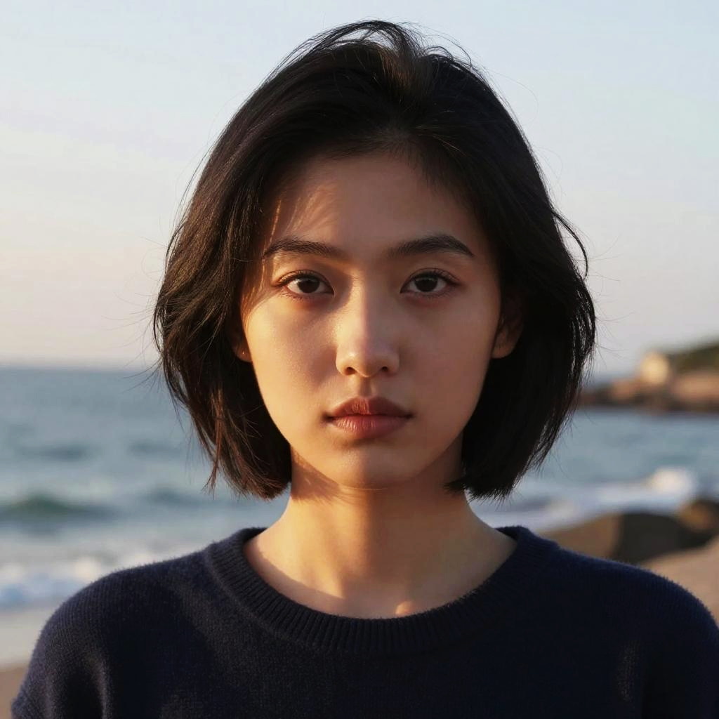 Front shot, portrait photo of a cute 22 y.o woman, looks away, full lips, natural skin, skin moles, stormy weather, (cinematic, film grain:1.1)