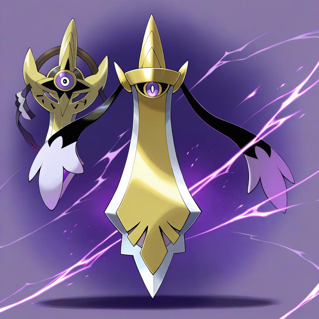 Aegislash, pokemon, no humans, purple eyes, sword, pokemon (creature), one-eyed, by artist nonbire, leet