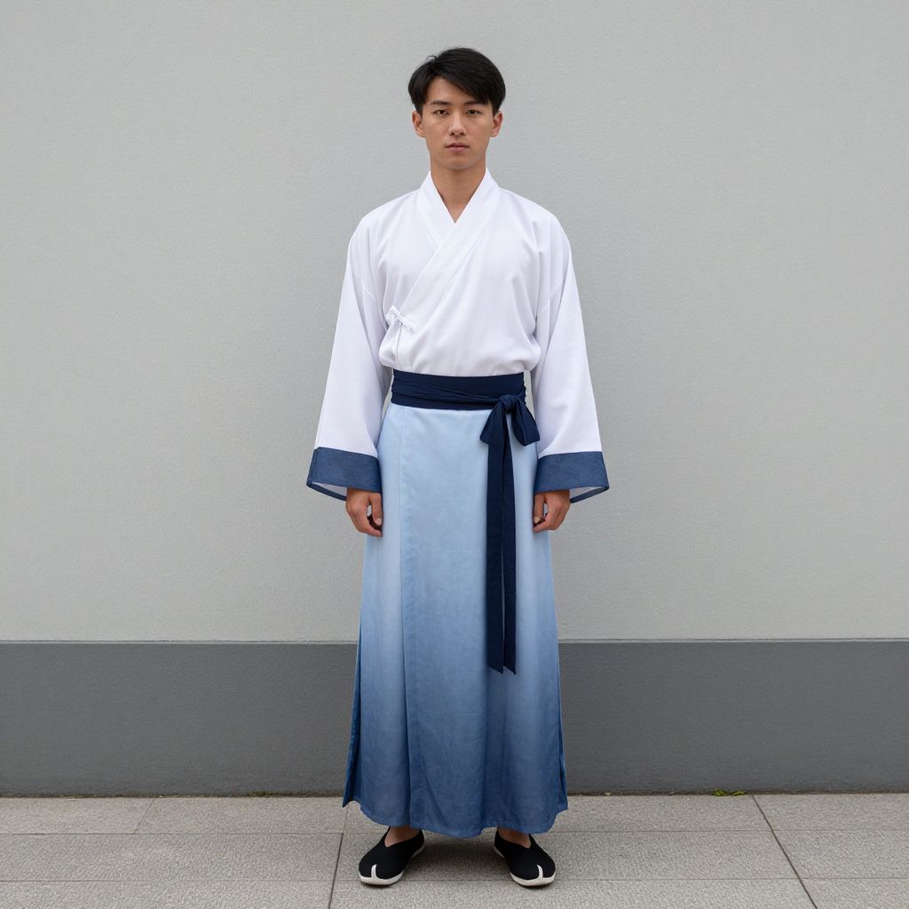 Farfetch Costume, man in a traditional chinese costume standing in front of a wall