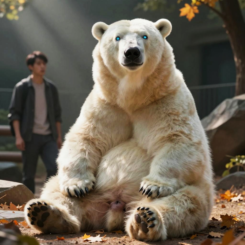 Uploaded on e621, by Foxovh, by Arthur Rackham, by Ruan Jia, by Blotch, by Annibale Carracci, solo chubby (((white polar bear))) with and ((clear turquoise blue eyes)), ((three-quarter portrait)), , (detailed Daniel F. Gerhartz anthro male bear), (detailed Johnfoxart lighting), (detailed fur), (detailed skin), [detailed ambient light], ((sitting at zoo on autumn day)), (cinematic lighting), ((detailed background)), ((looking at viewer)), (((three-quarter view))), (((genital focus))), (half body shadow), [backlighting], [crepuscular ray], [gray natural lighting], [ambient light on the belly], [realistic proportions], [explict content], [sharp focus], (questionable content), (shaded), ((masterpiece))