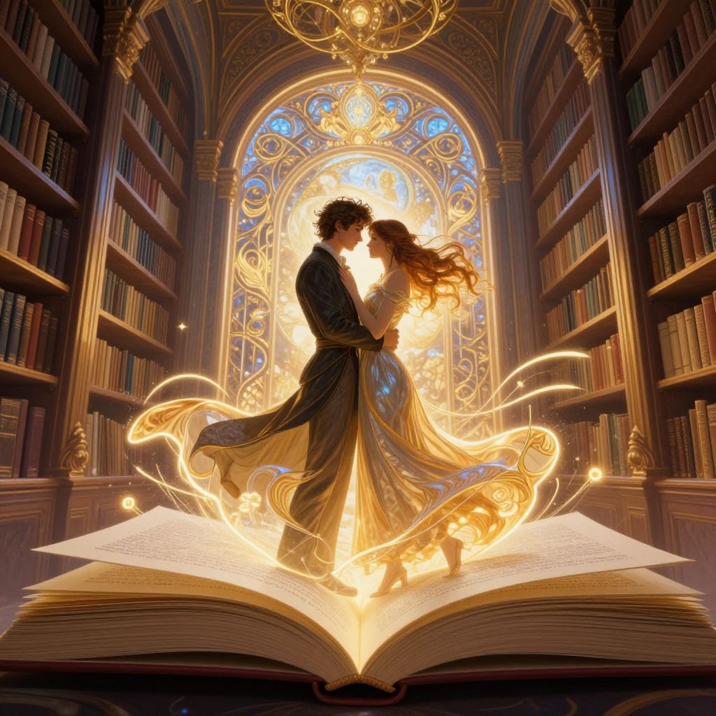 Romantic Couple in Neon Infinite Library
