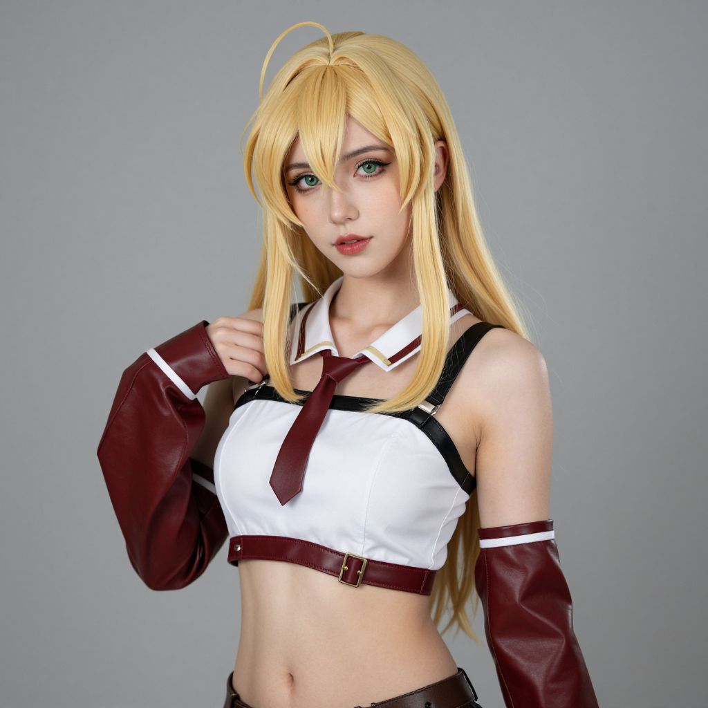 Sexy cosplay woman character wearing Misa Amane costume. Realistic photo. Jane Doe dressed as Misa Amane. Realistic photo, caucasian woman, pretty face