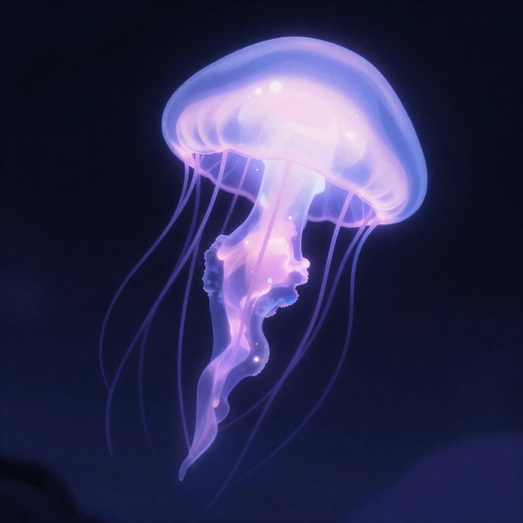 A glowing purple moon rabbit in an anime illustration style, ethereal and magical.