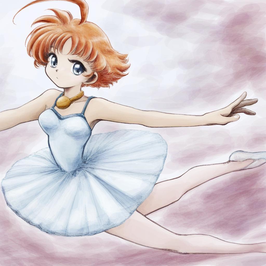 Ahiru (princess tutu), princess tutu, 1girl, blue eyes, orange hair, ahoge, ballerina, tutu, ballerina, by artist kutsuki kai, illustrious