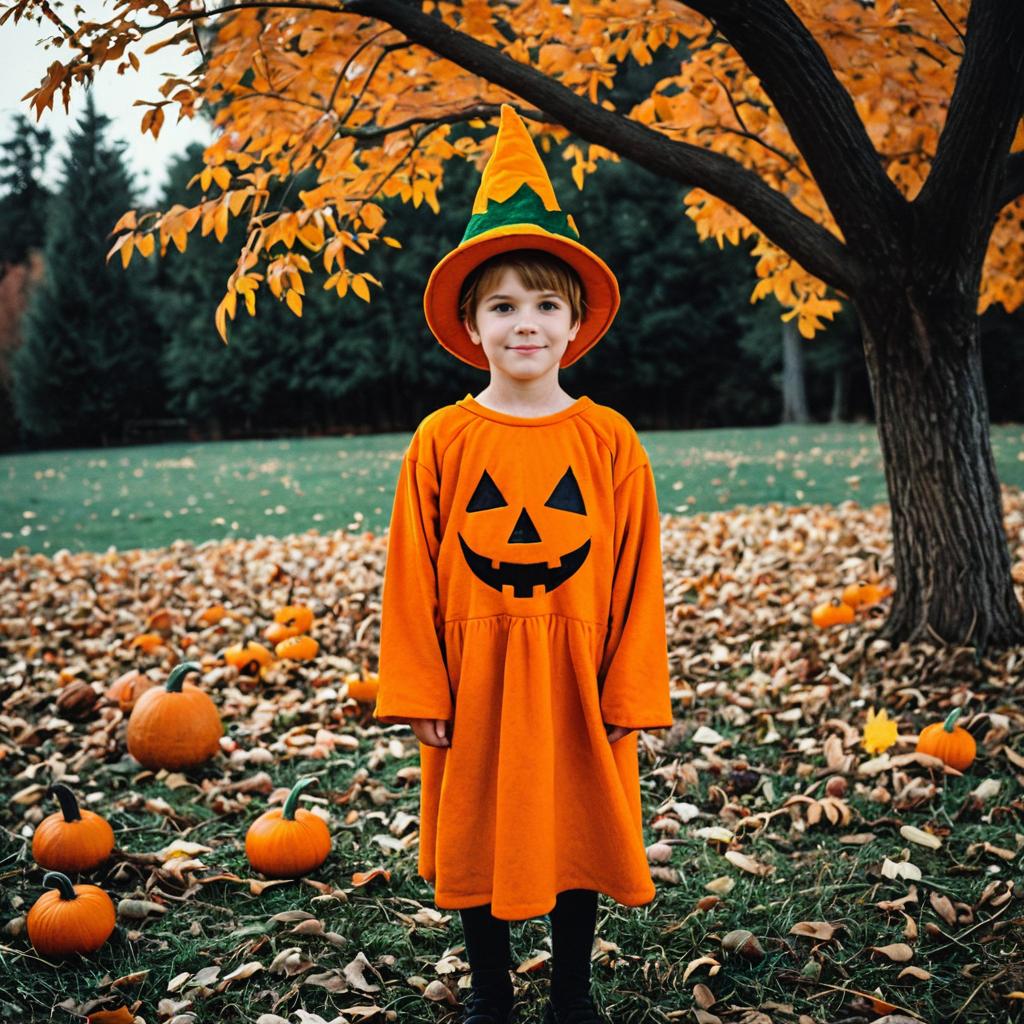 Boy in Pumpkin Costume Outdoors