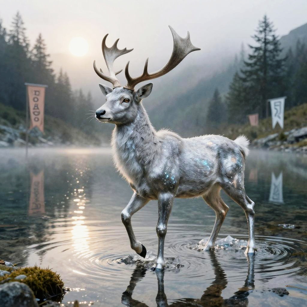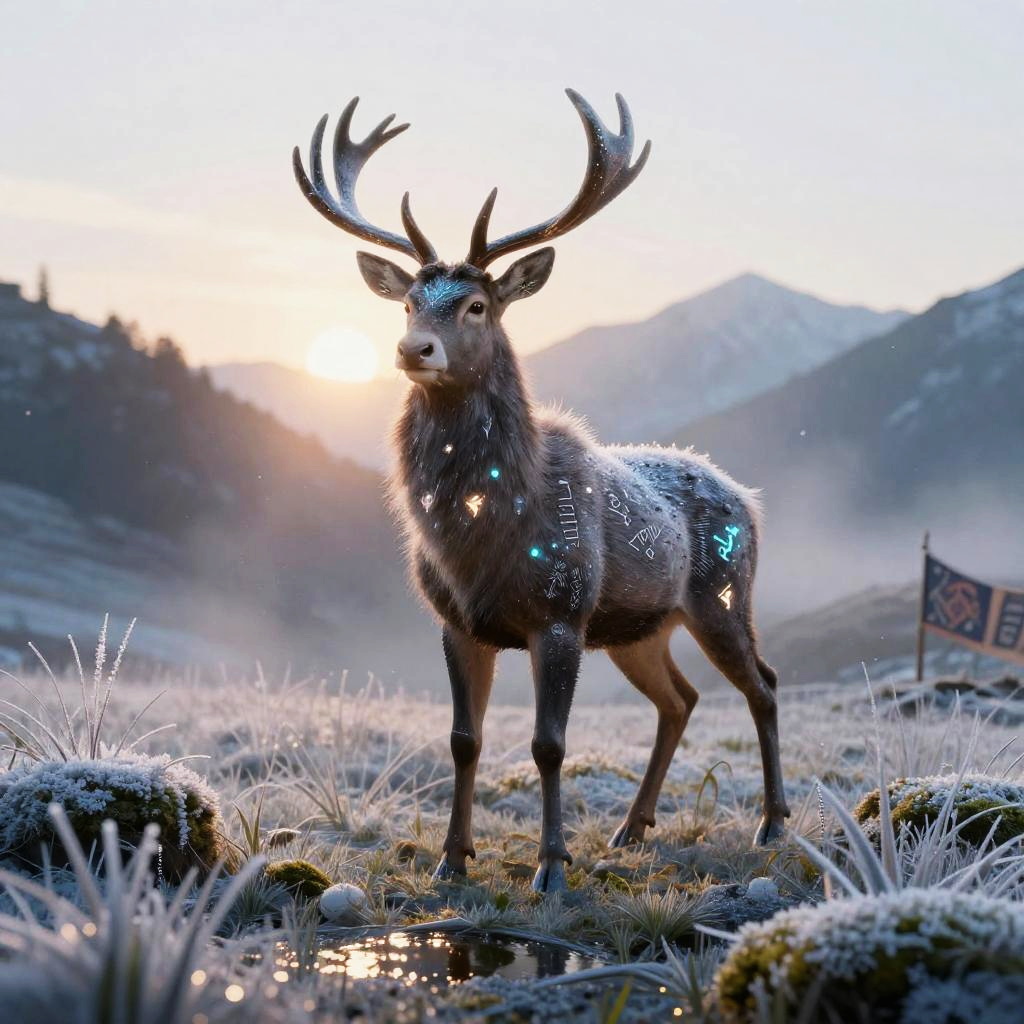 Elder bronze ram shaman, standing confidently in rocky mountain pass beneath stormy skies, bioluminescent markings softly aglow, detailed facial expression and whiskers, dynamic mid-motion pose, cinematic rim lighting, gentle volumetric fog, subsurface scattering on fur, drifting particles and environmental details like moss, puddles, or banners as appropriate, reflective highlights, shallow depth of field, natural color grading, balanced rule-of-thirds composition, storytelling accents and ancient glyphs where fitting, rough textured oil painting with dynamic brush strokes, high detail, subtle film grain, epic mystical atmosphere