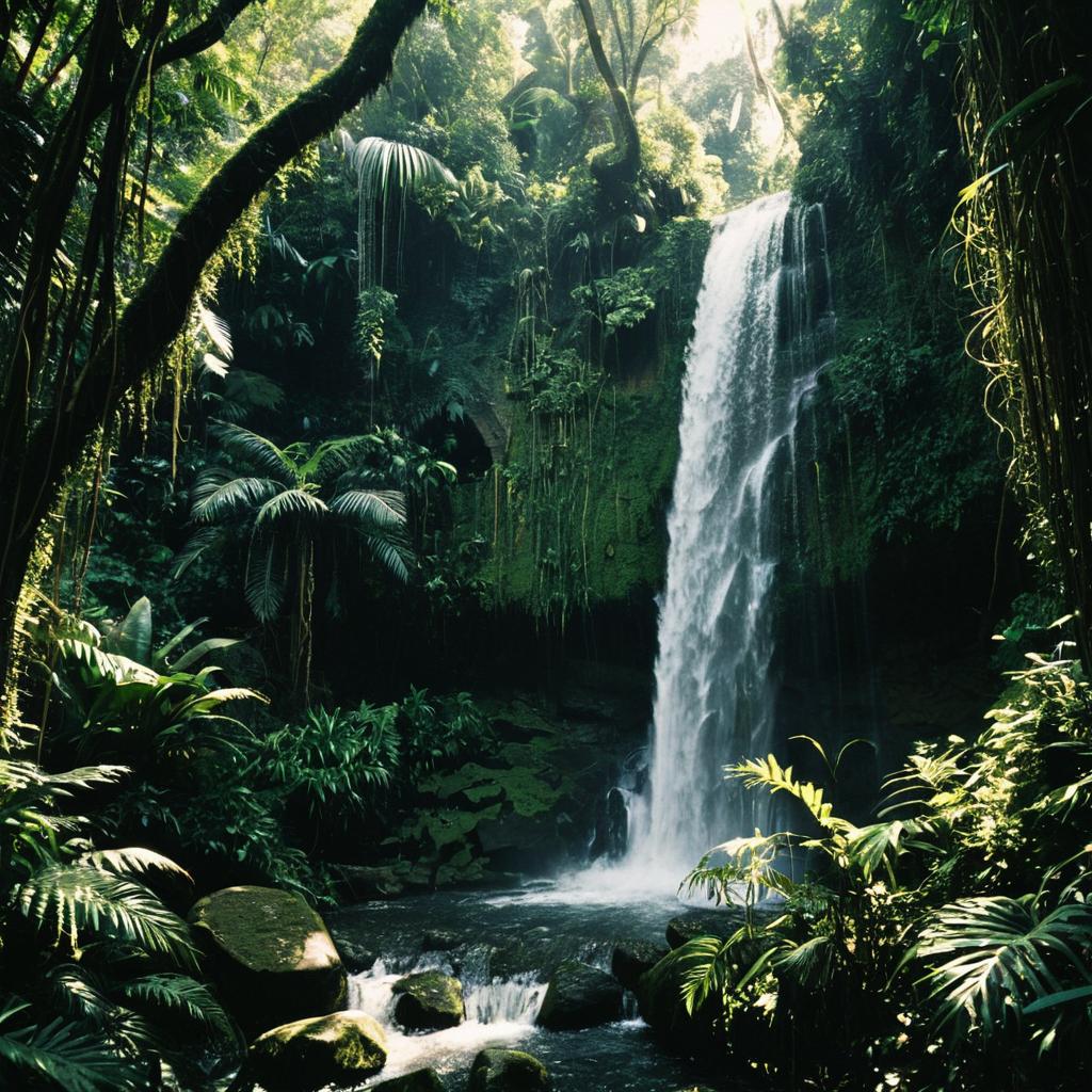 Enchanting Rainforest Waterfall Scene