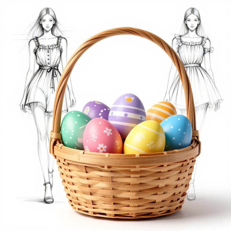 Basket of Colorful Easter Eggs with Fashion Sketches