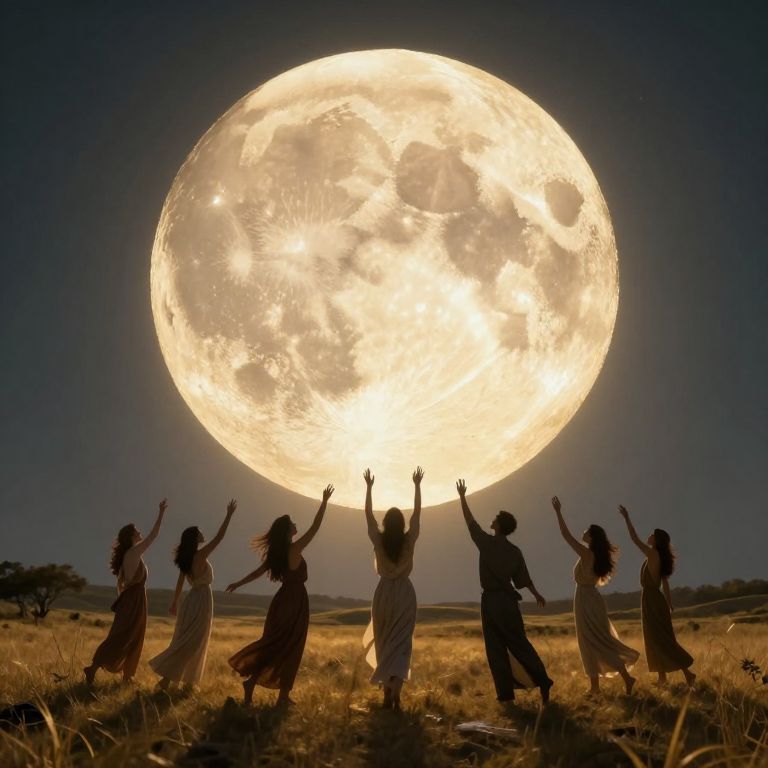 In a world where dreams shape destiny, a celestial moon bathes a serene landscape in golden light, as figures reach toward the heavens, embodying the timeless dance between wonder and the unknown.