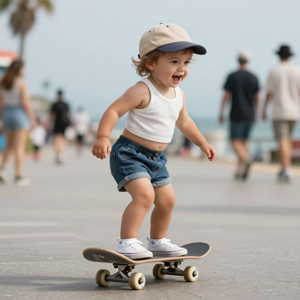 Skater Baby Riding Oceanfront Pier