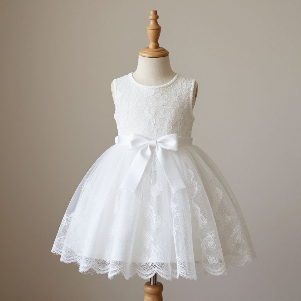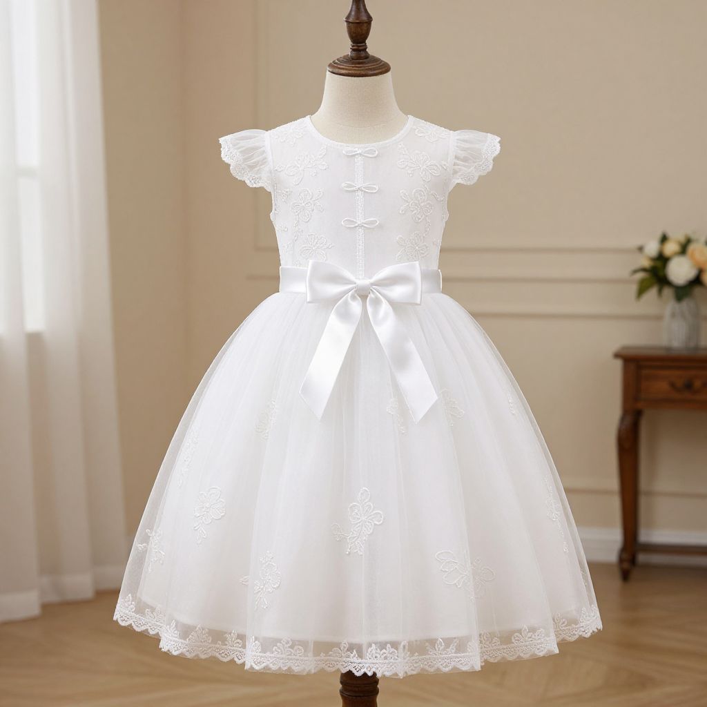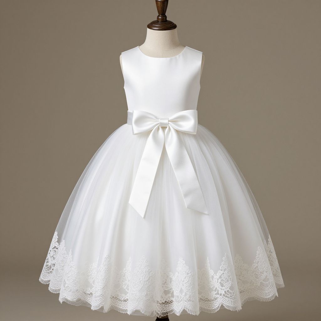 Girls White or Ivory Glitter Tulle Dress with Poly Silk Sash and Flower