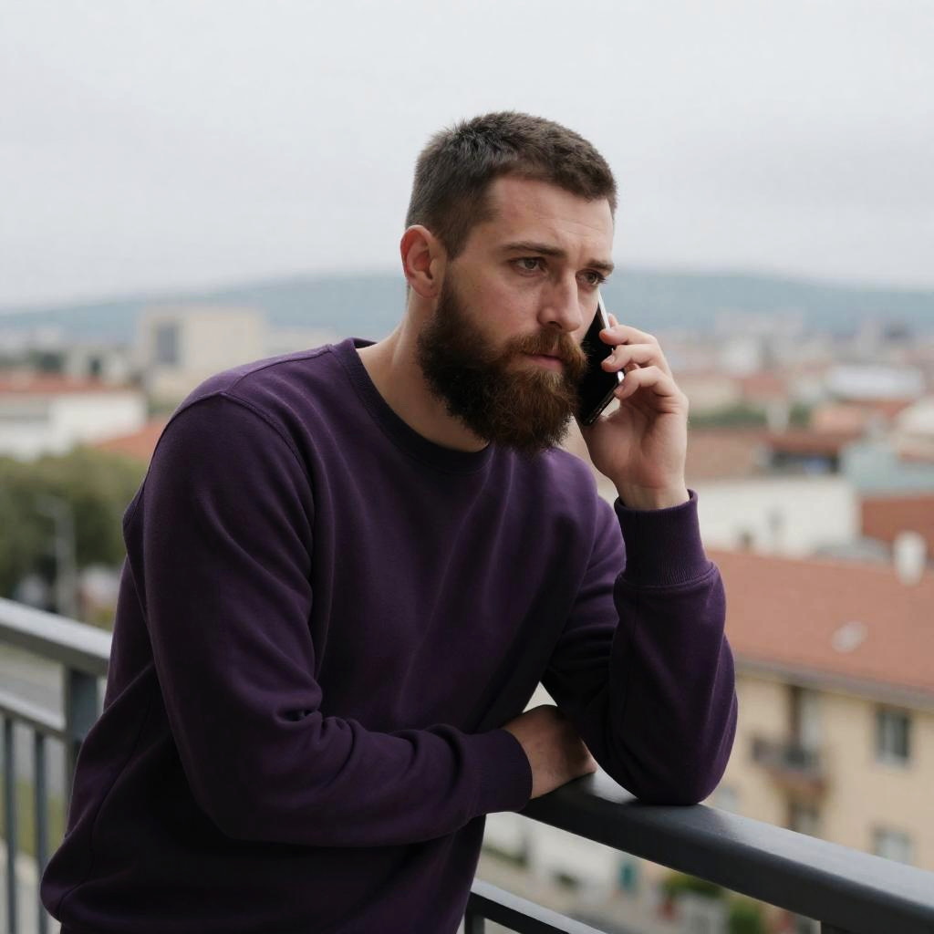 Photograph of a bearded man in a dark gray suit with a red rose boutonnière, holding a glass of red wine, standing among seated guests. Background: green foliage and a white wooden barrier. Seated guests: blurred, formal attire. Other man in white shirt, focused expression, behind standing man. Intense greenery in background.