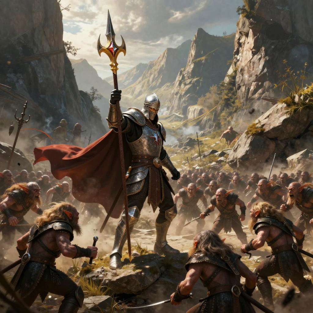 Heroic Warrior in Red Cloak