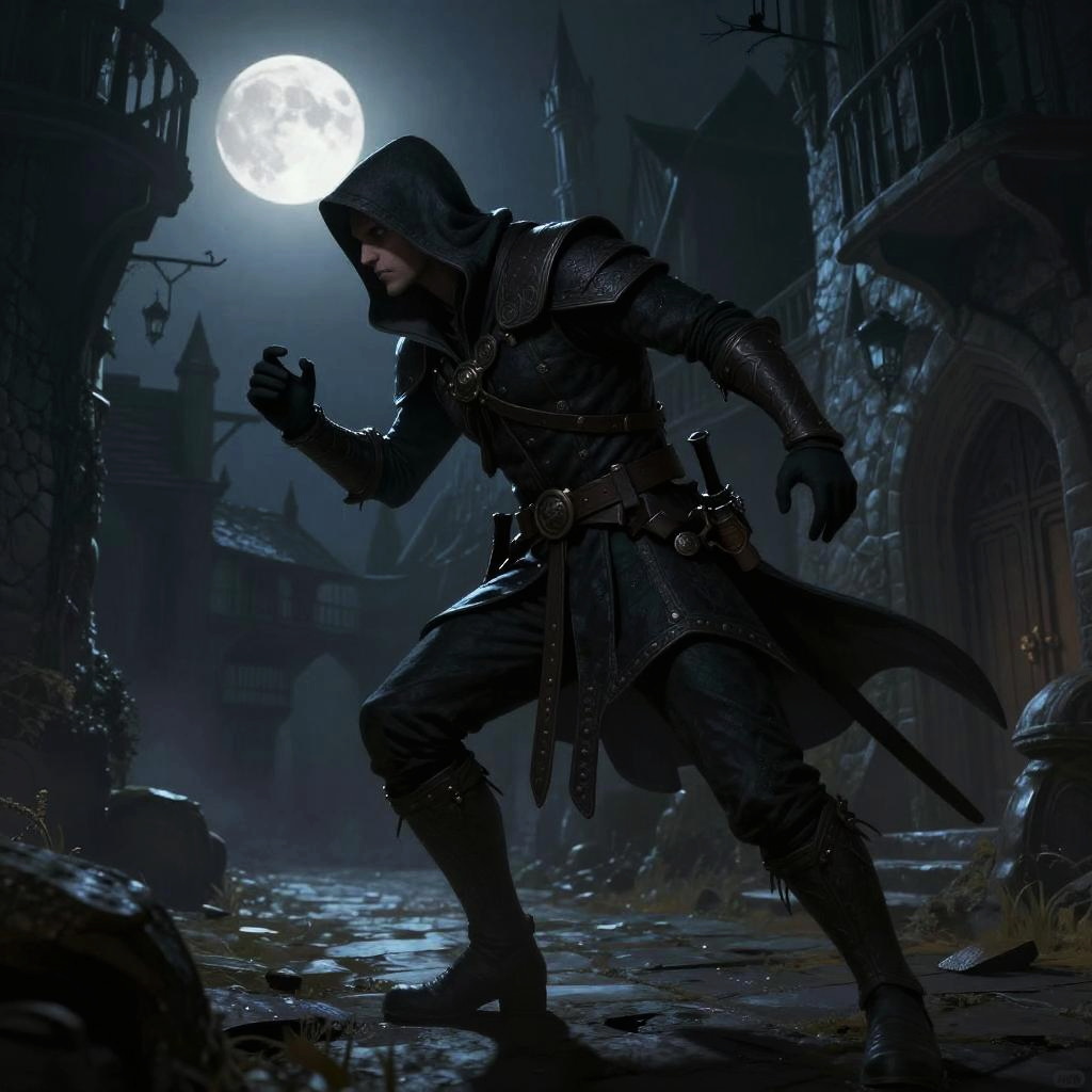 Red cloak with hood draped over a warrior's shoulders in a battlefield at twilight, dynamic pose, dust and smoke effects, high contrast lighting, heroic fantasy illustration