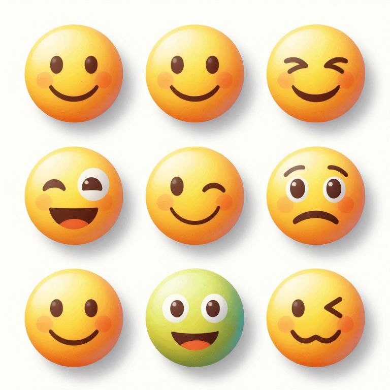 A set of creative emoji icons inspired by modern art, each featuring exaggerated, quirky facial expressions with unique color palettes and textured brush strokes, arranged on a minimalist backdrop that highlights their personality and innovative design.