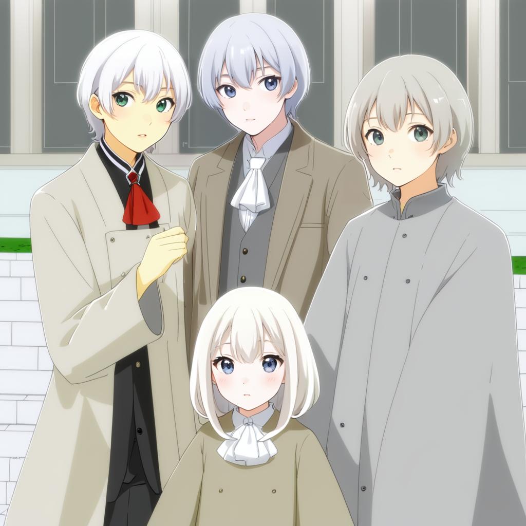 Houlen yabusame, len'en, 1other, grey eyes, grey hair, short hair, short hair with long locks, brown coat, short over long sleeves, puffy short sleeves, wide sleeves, ascot, by artist festa11307070, anime