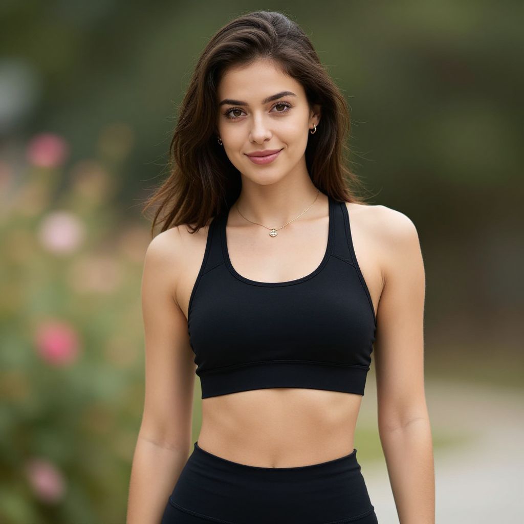 "woman costume, 1girl, solo, long hair, looking at viewer, skirt, blurry, brown hair, blurry background, shirt, arms at sides, realistic Realistic photo of casual sexy person with pretty face"