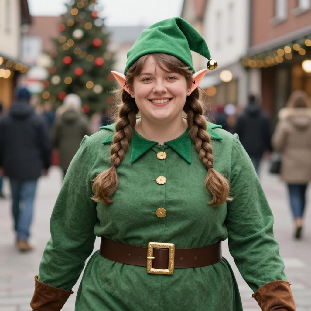 Christmas story lamp costume, photorealistic, young boy, traditional costume, lantern hat, white shirt, red suspenders, red pants, winter street, evening, blurred background, streetlights, Christmas decorations, soft light, serious expression, traditional European attire, realistic ures, holiday market, warm colors, detailed clothing, lantern details