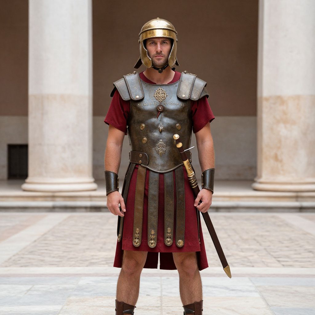 Roman Soldier Costume Adult, man in roman costume standing in front of a building