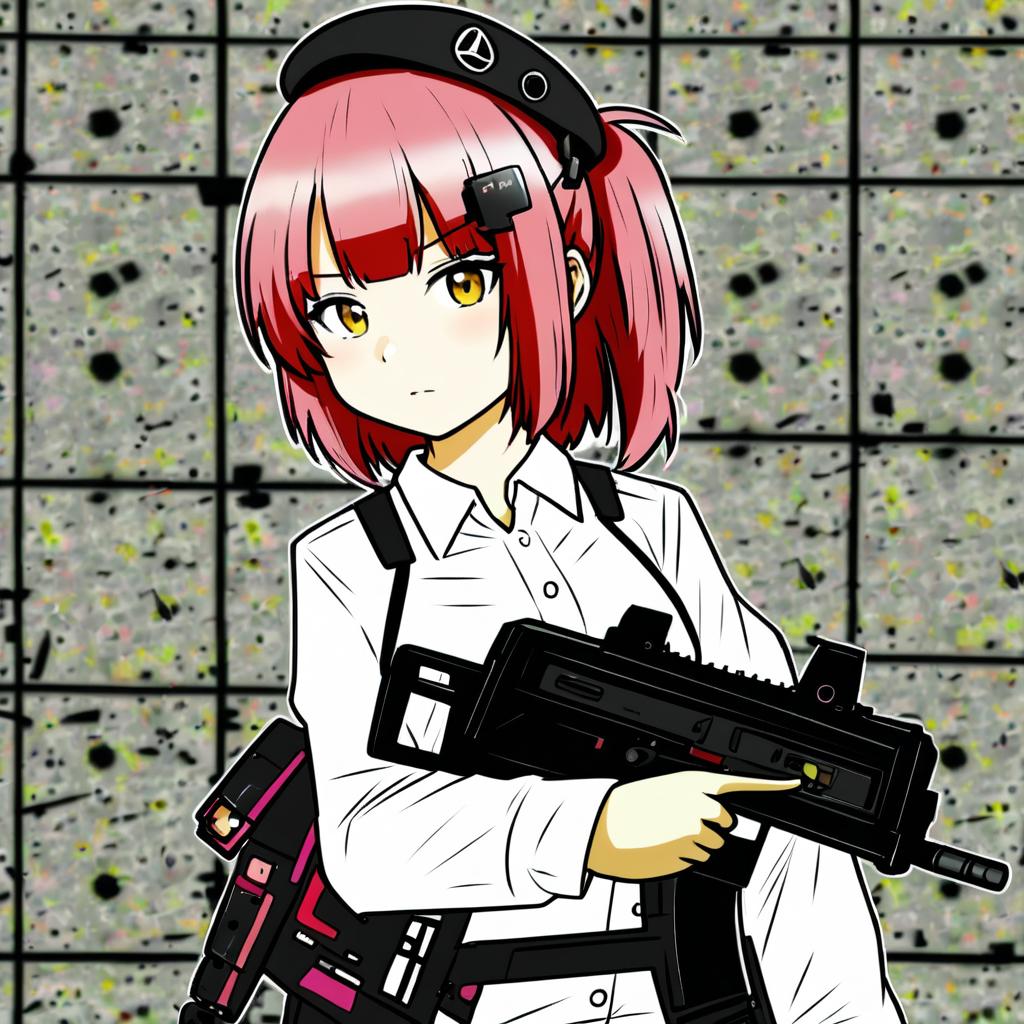 Illustration of Mp7 (girls' frontline), girls' frontline in the style of Machismo fuji