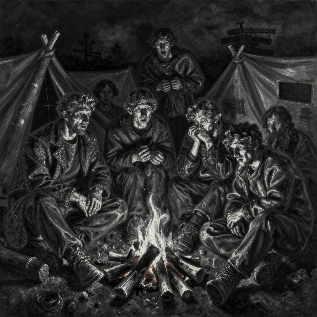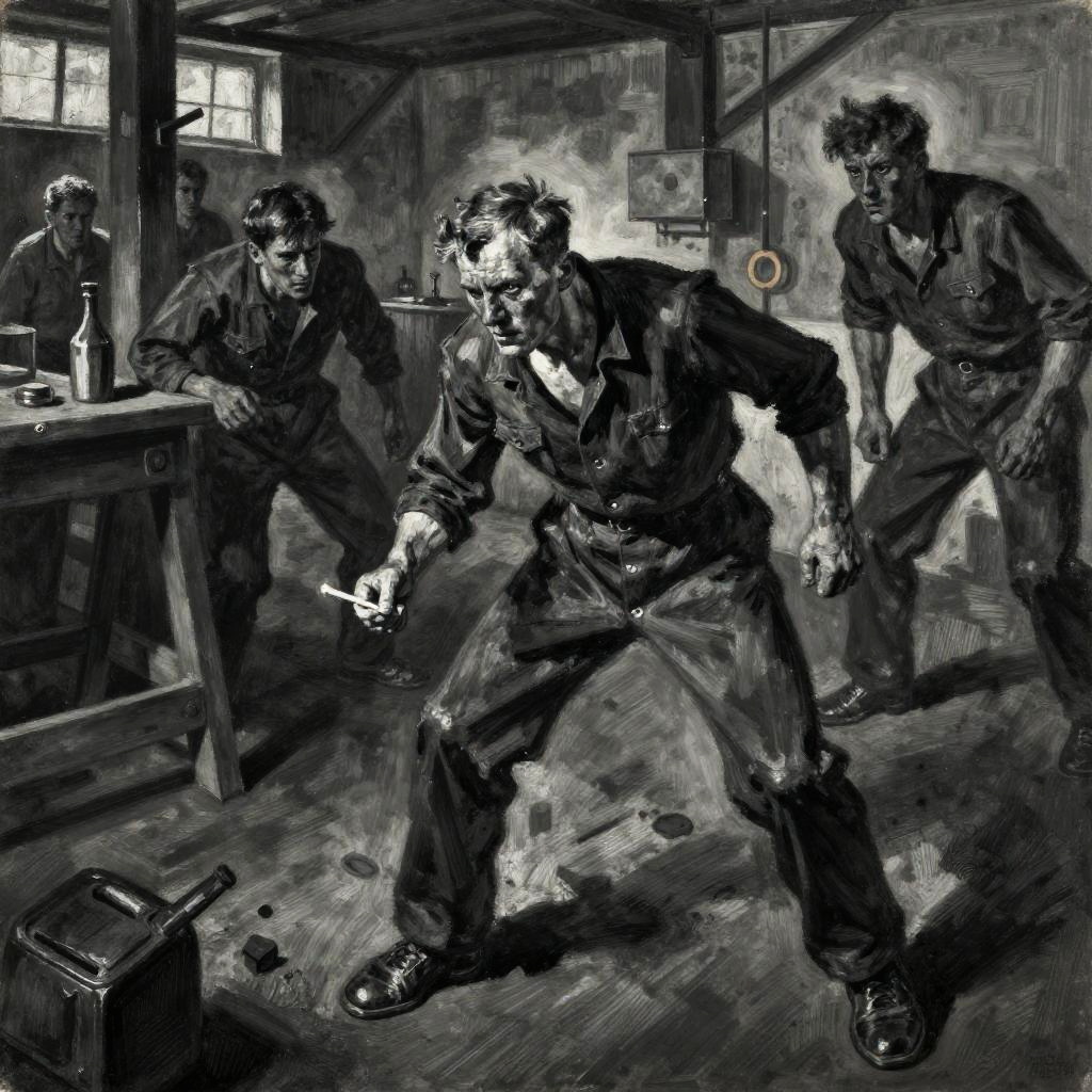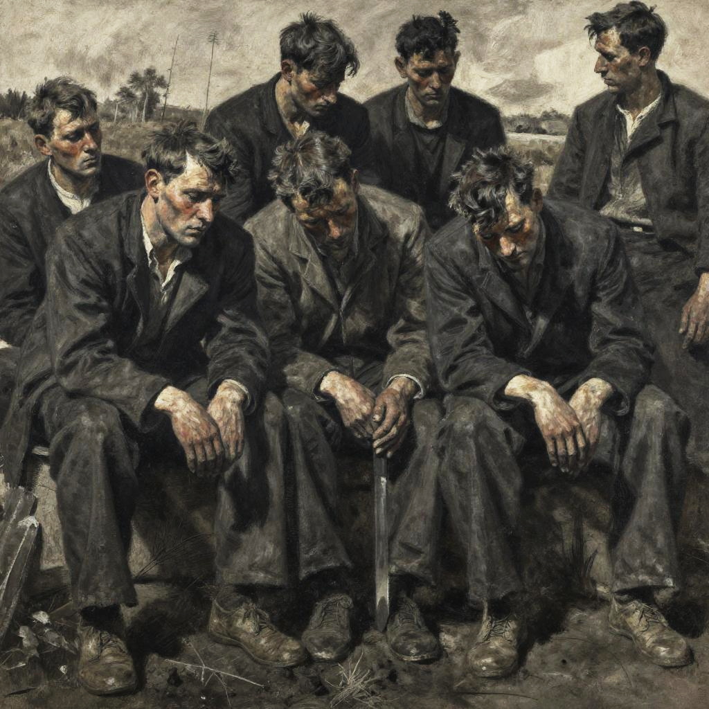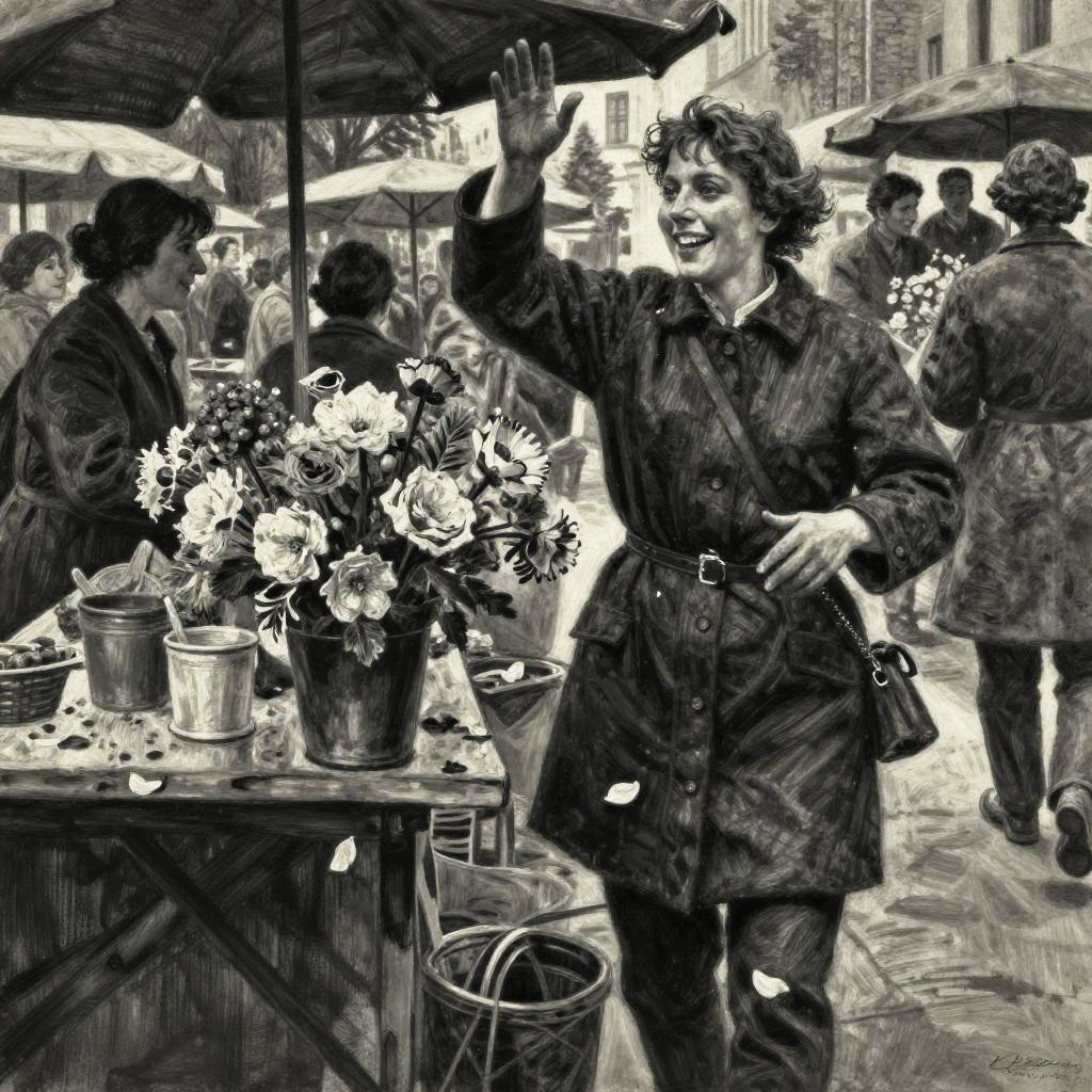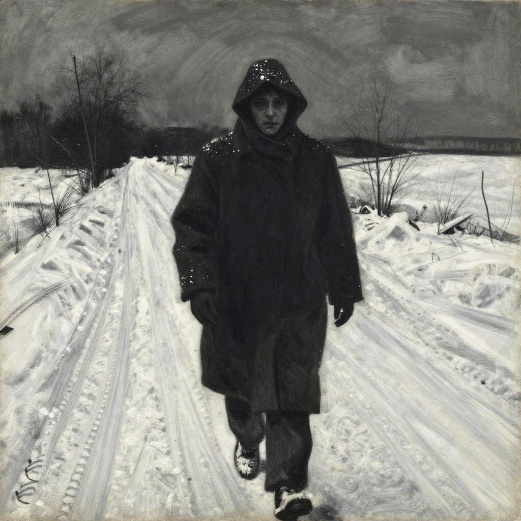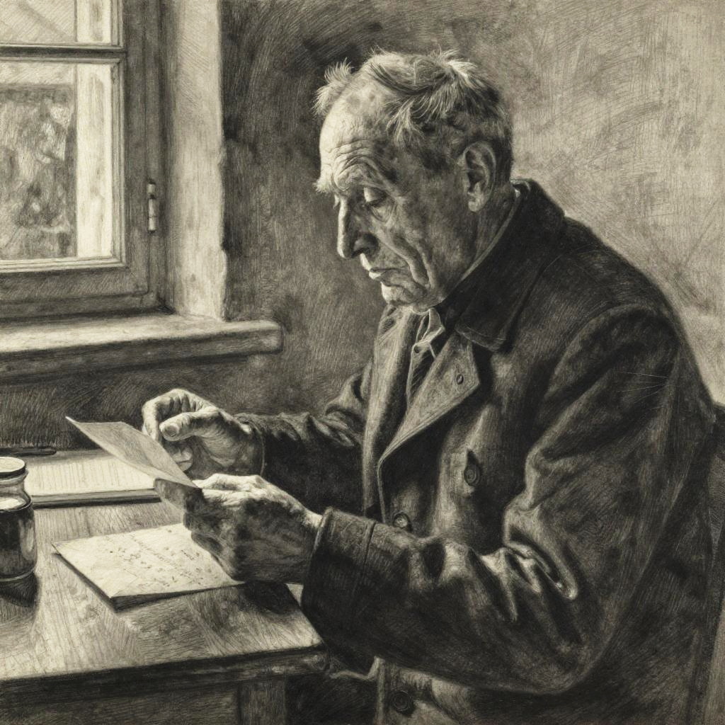 Monochrome charcoal painting depicting a wet nurse tenderly cradling a baby in a modest nursery setting. The artwork features gentle lines and soft textures, capturing nurturing warmth and protective affection. The muted lighting and dramatic, expressive style emphasize emotional depth and intimate connection between the subjects.