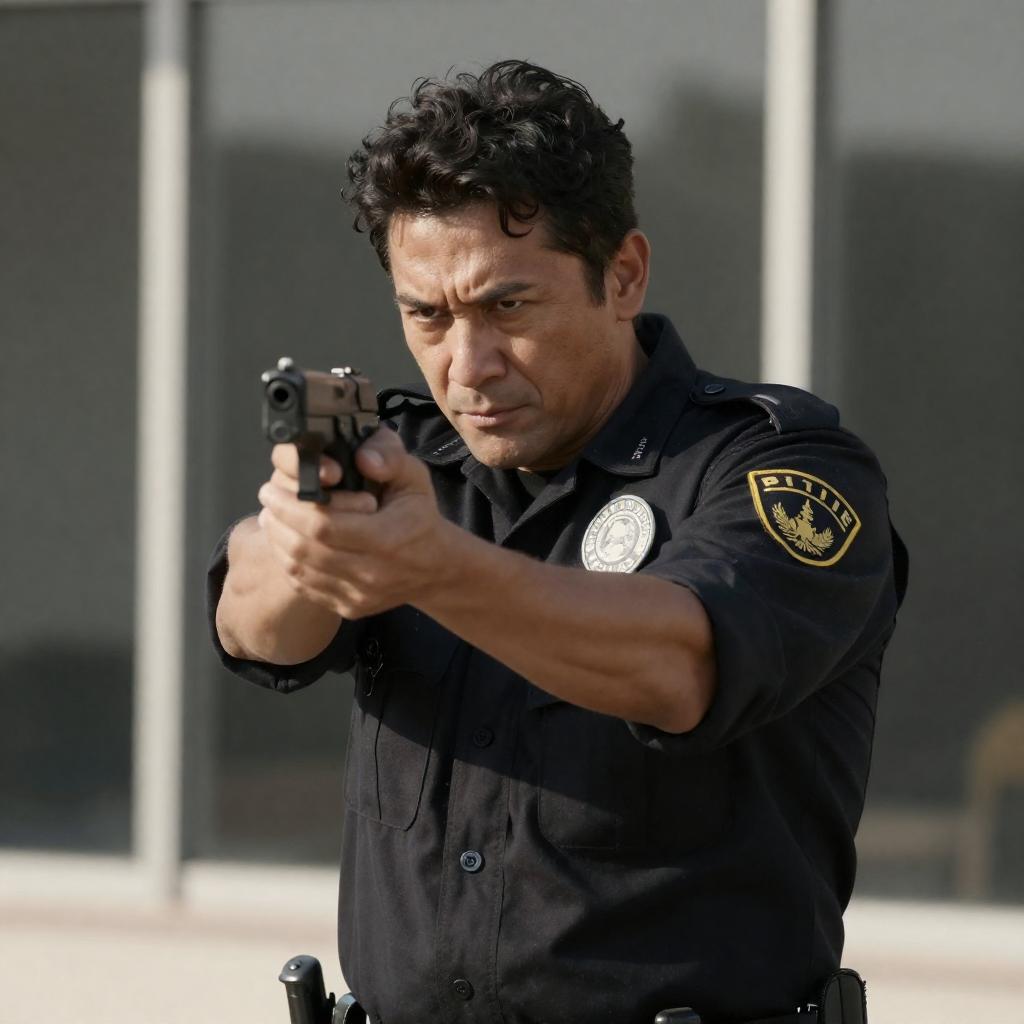 Gritty High-Contrast Portrait: Man Pointing Gun