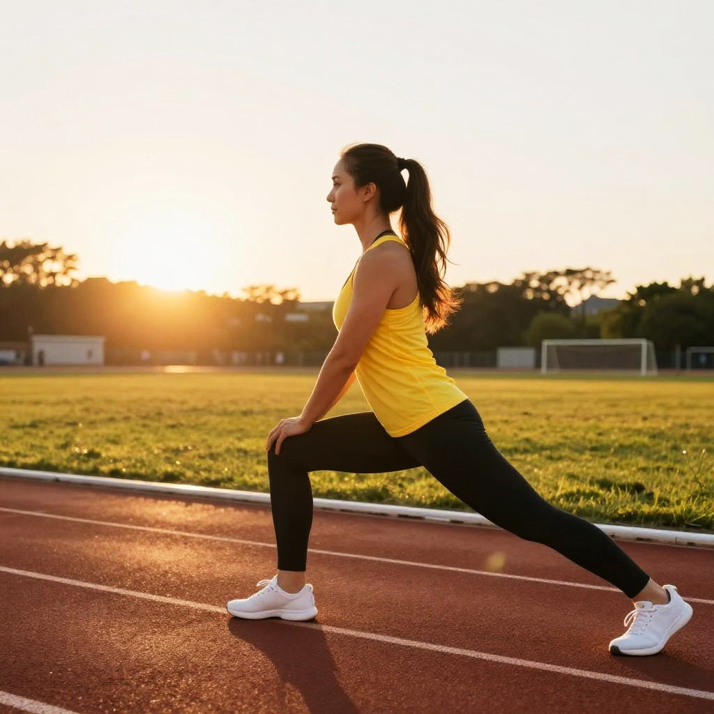 Fit Woman Stretching on Sunny Road