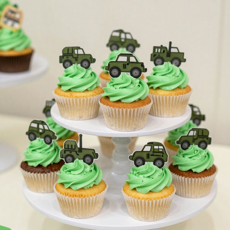 Army-Themed Cupcakes with Green Frosting