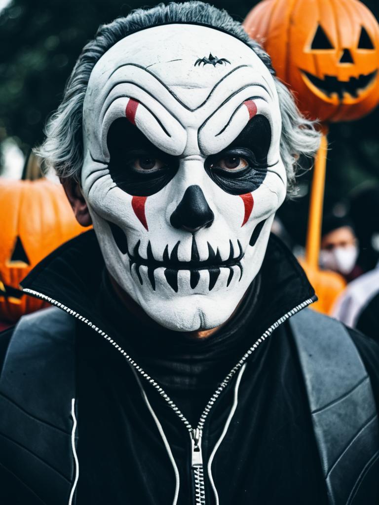 Man in Cartoon Halloween costume, cosplay festival portrait, realistic detail