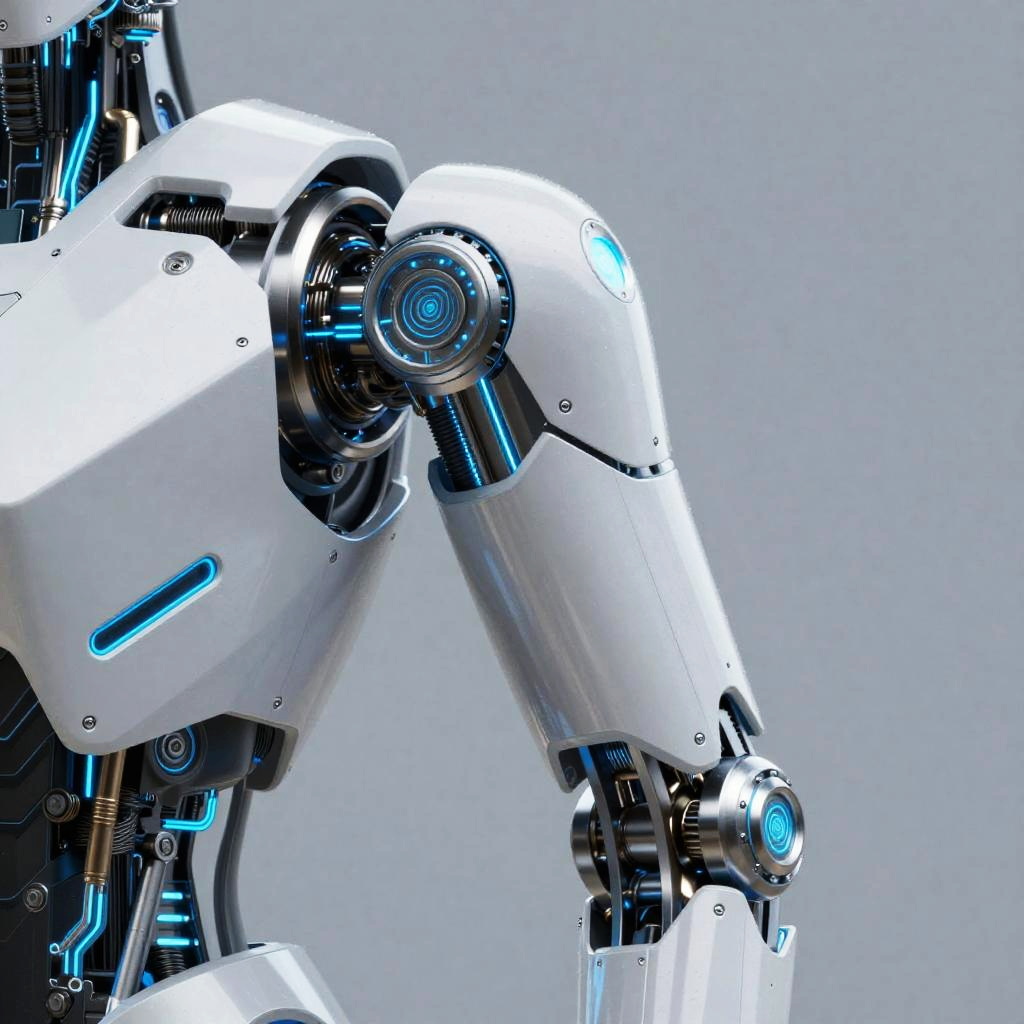 Cu focused shot of a cutting-edge futuristic cybernetic unit (cu) embedded in a sleek robotic arm, highlighting intricate mechanical parts, illuminated blue circuits, and shiny metallic surfaces