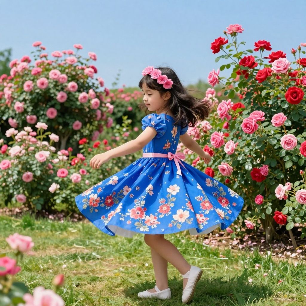 Tight young girls running through a blooming spring meadow, bright sunlight, flowing dresses, joyful expressions, wildflowers and green grass, soft focus background