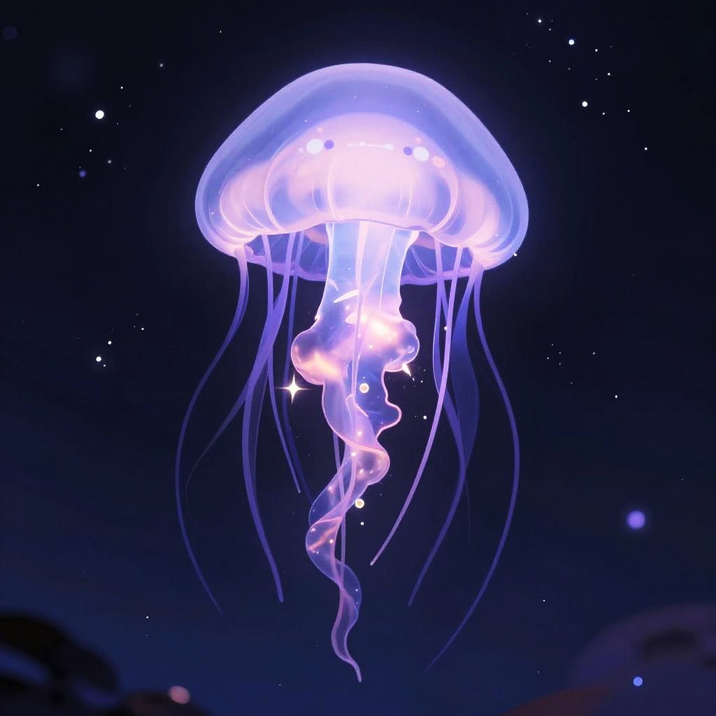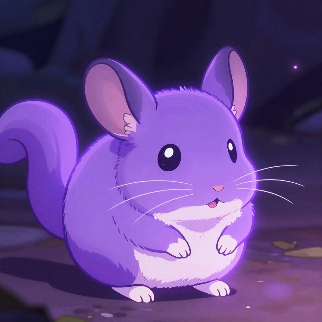 A glowing purple red panda, anime-inspired, radiant and cute.