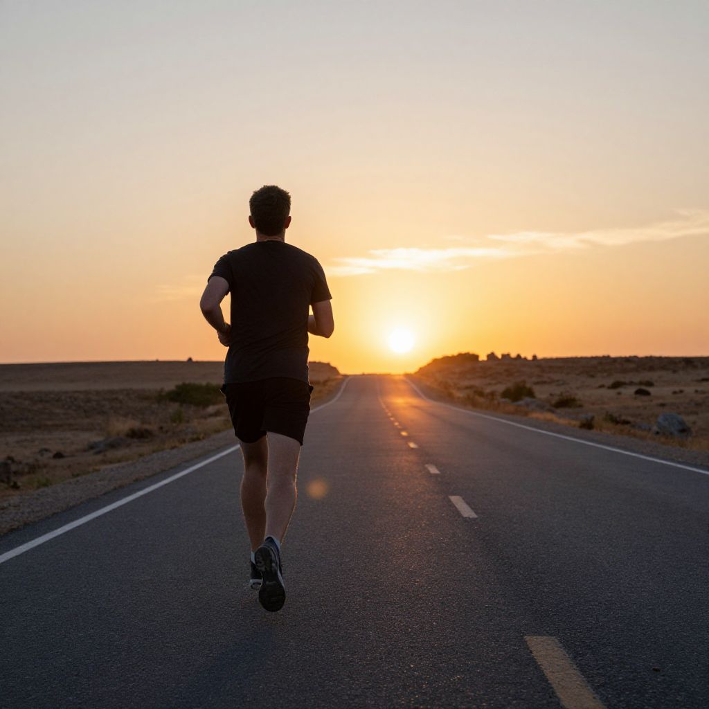 Silhouetted runners stride determinedly down a bustling urban street as the golden glow of sunset casts elongated shadows ahead, creating a mesmerizing interplay of light and movement in the heart of the city.