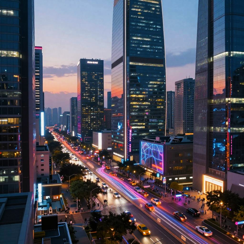 Futuristic Cyberpunk Cityscape at Dusk