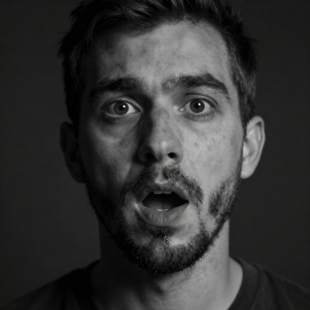 Dramatic Black-and-White Portrait of Shock