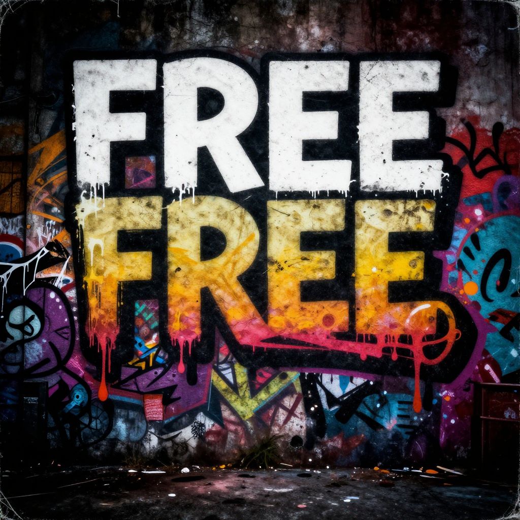 Free AI album cover generator designing a bold and gritty album cover, showing urban street art style, graffiti textures, and dark moody colors with splashes of bright highlights, capturing the energy of hip-hop or alternative rock music.