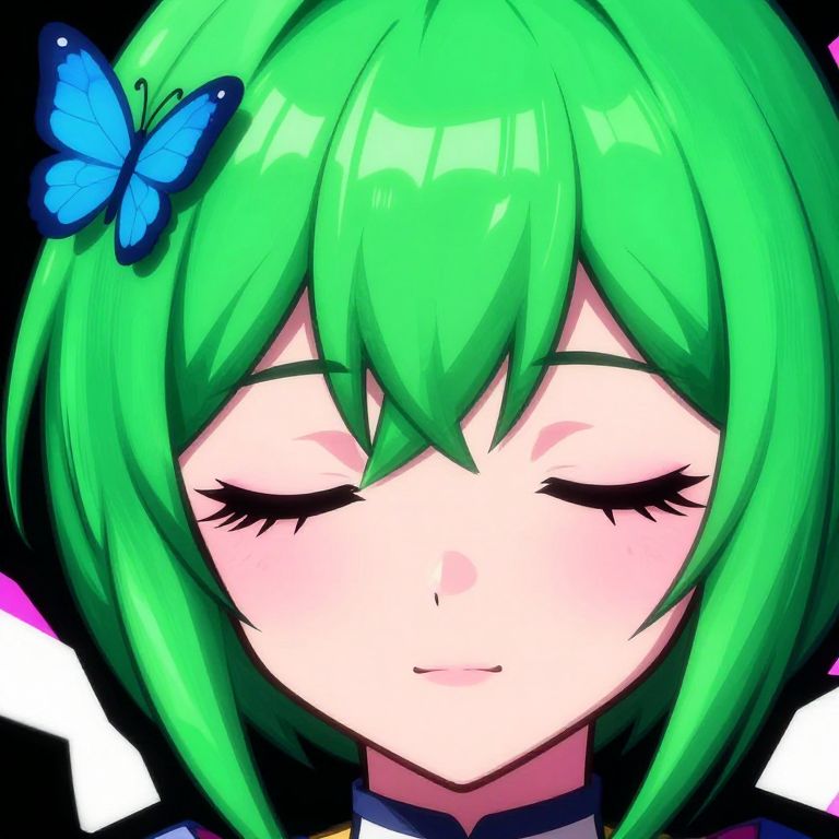 Digital anime-style illustration of a green-haired character with yellow sunglasses, black gloves, and colorful accessories, looking serious against a dark background.