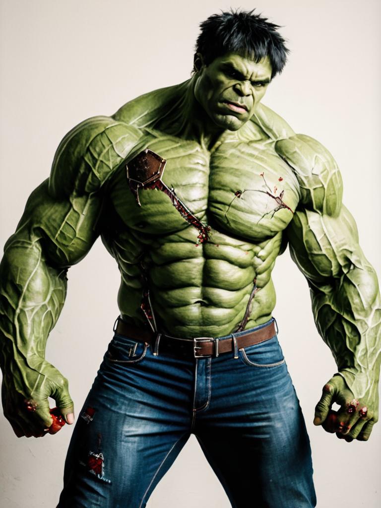 Man cosplay. Wearing Zombie Hulk costume. Realistic photo. Dressed as Zombie Hulk --sref 1400