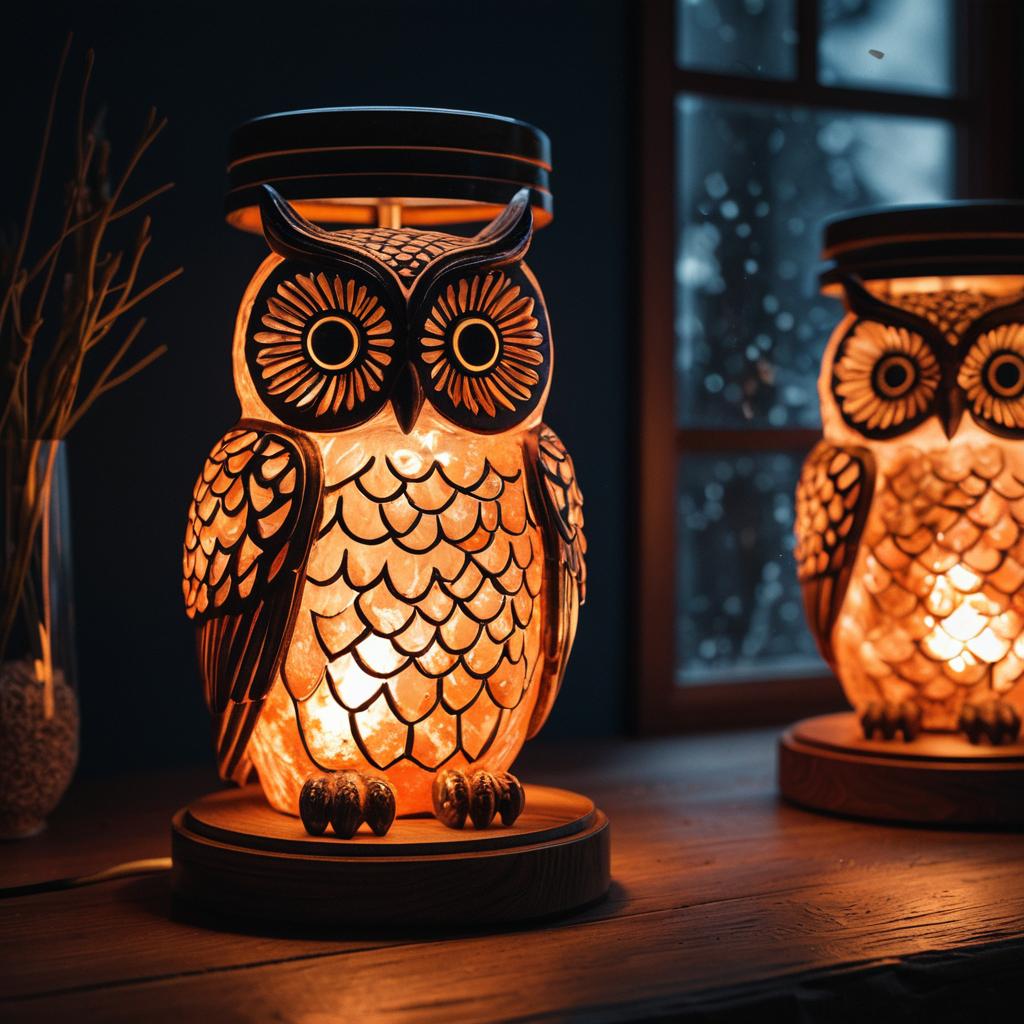 A himalayan rocksalt lamp owl inside a glass jar, intricate detail, volumetric lighting, epic composition, hyper detailed, ultra realistic, sharp focus, octane render, ray tracing, sense of awe, cross