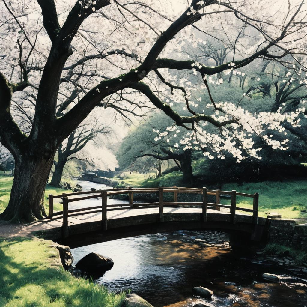 The image captures a drift of cherry blossom petals in spring breeze. The suspended droplets and the smooth interplay of light and dark hues create a visually striking scene that portrays the elegant flow and contrast between the two liquids.