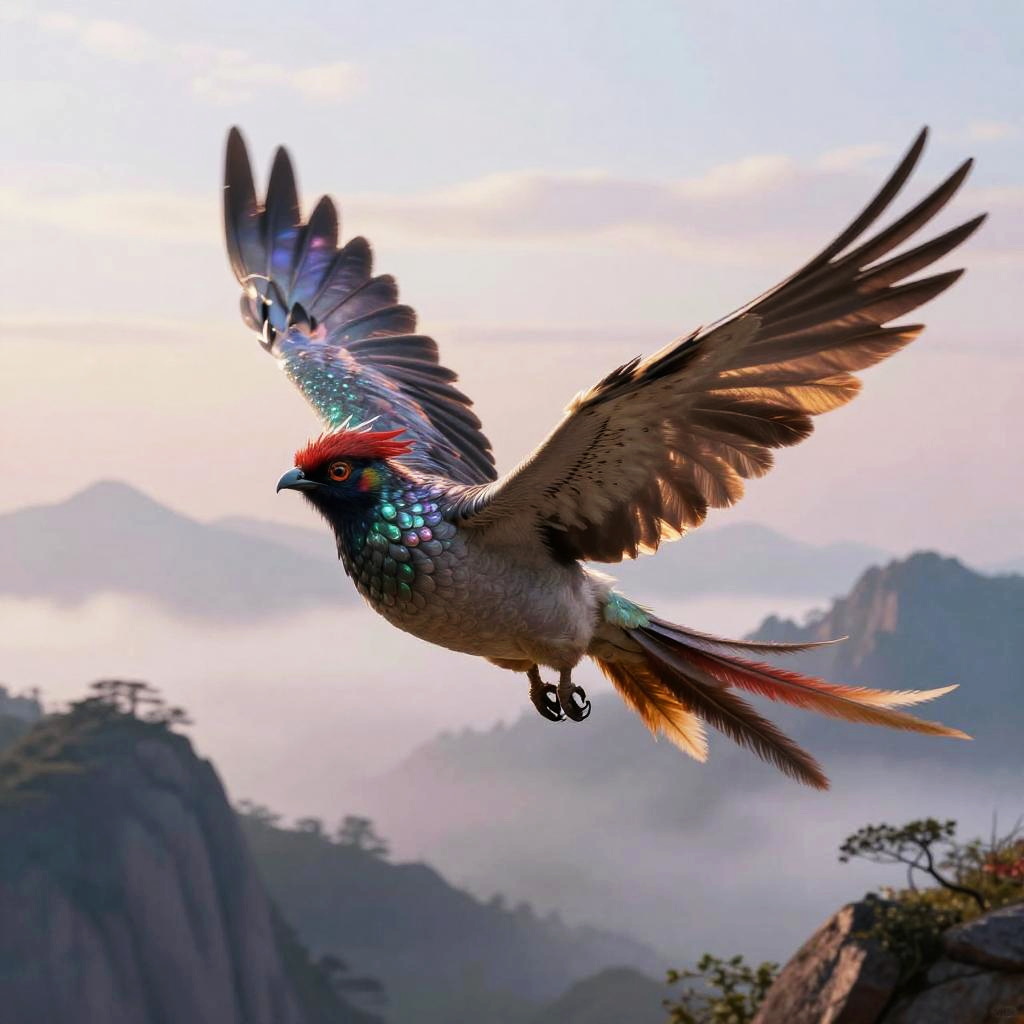 Feathertail Soaring Above Misty Peaks