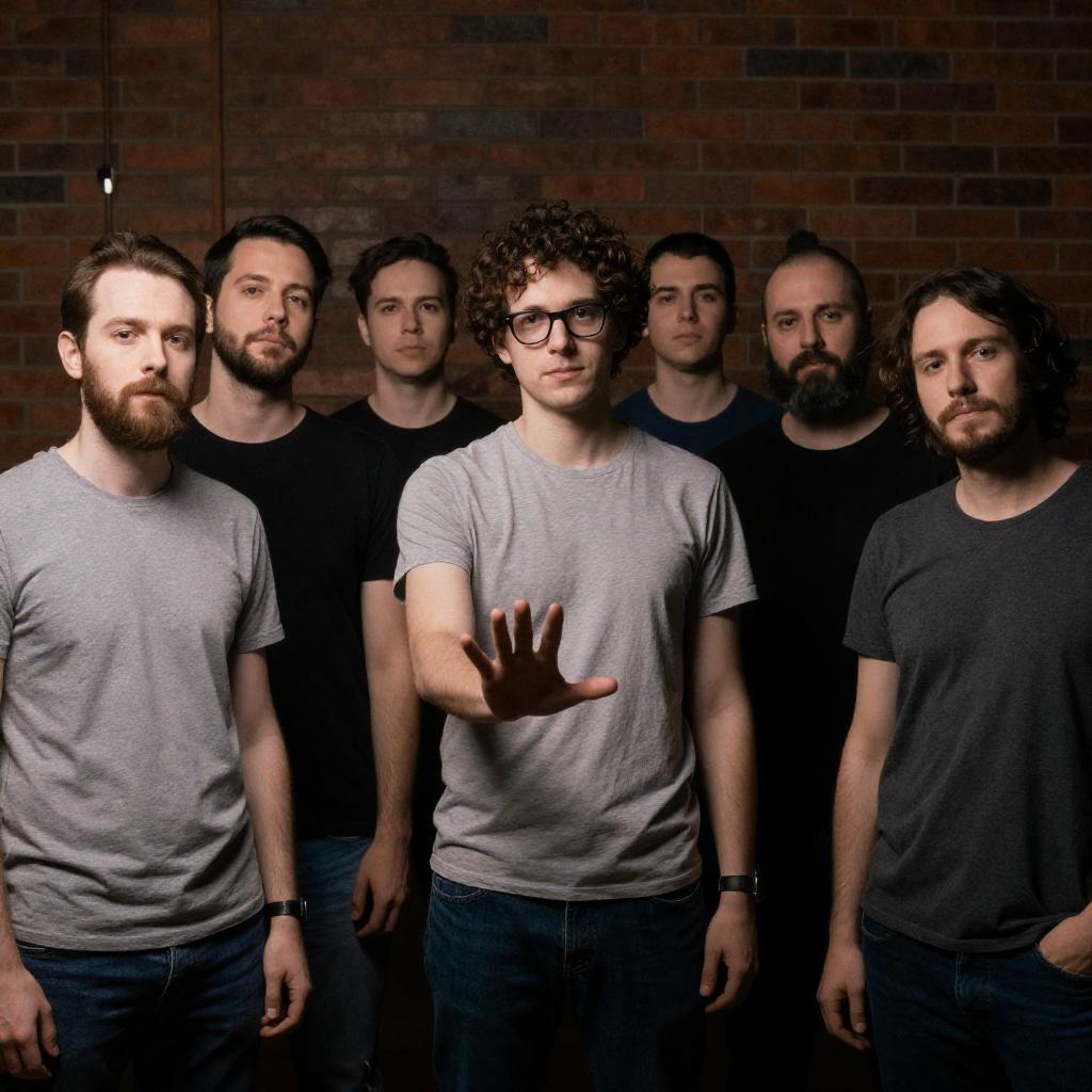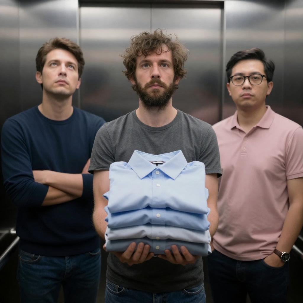 Three Men in a Green-Lit Elevator Scene