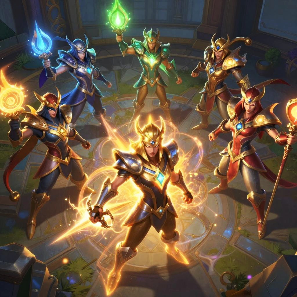 Light league of legends images featuring luminous skins and magical spells casting bright auras around iconic characters, vibrant colors with a fantasy atmosphere.