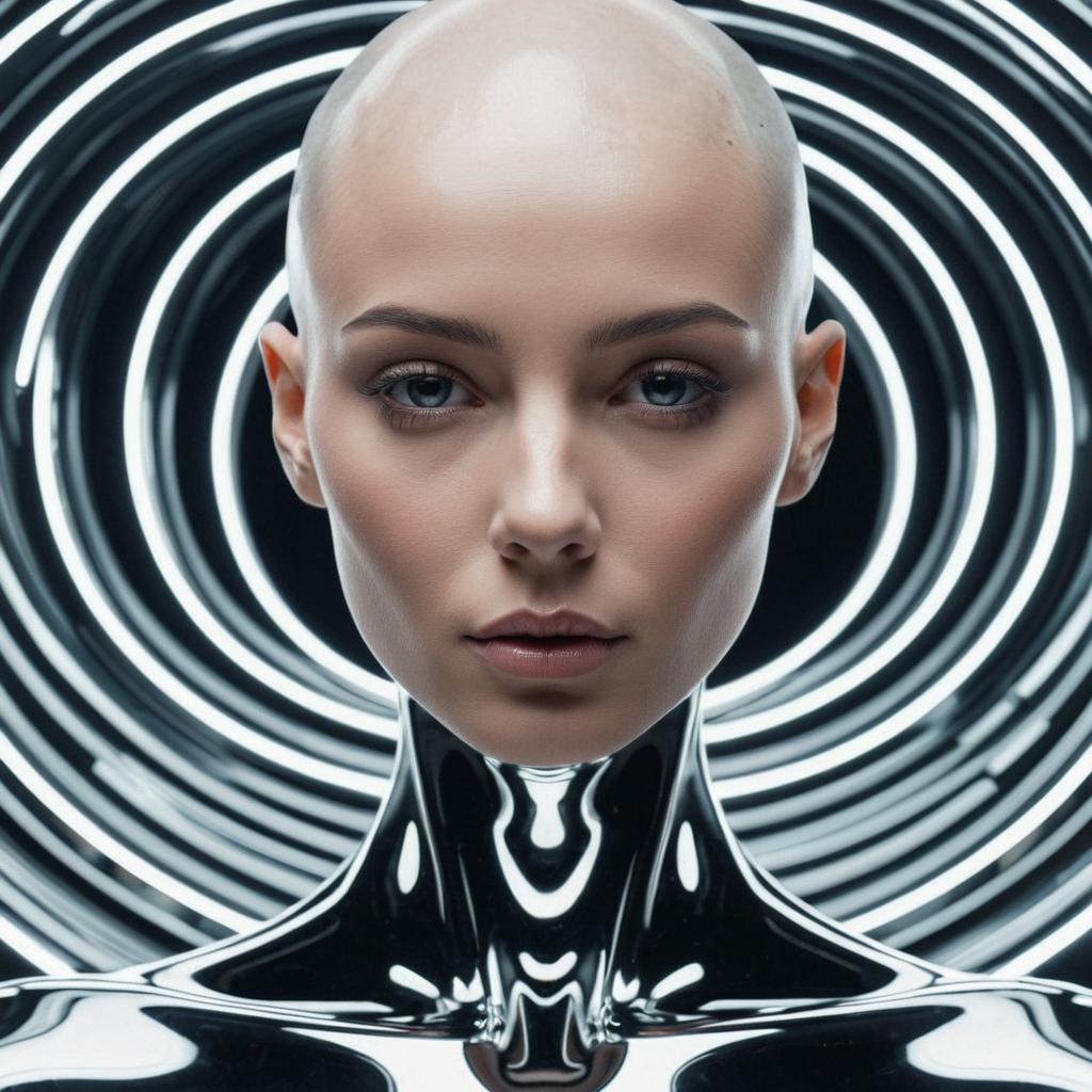 3D female transparent neck, symmetrically centered, gleaming copper and turquoise shades, captivating facial features, smooth contours, artistic play of light and shadow, striking reflections, modern design aesthetic, ethereal background enhancing spatial depth, ultra-detailed, high quality, visually stunning, scintillating ambiance.