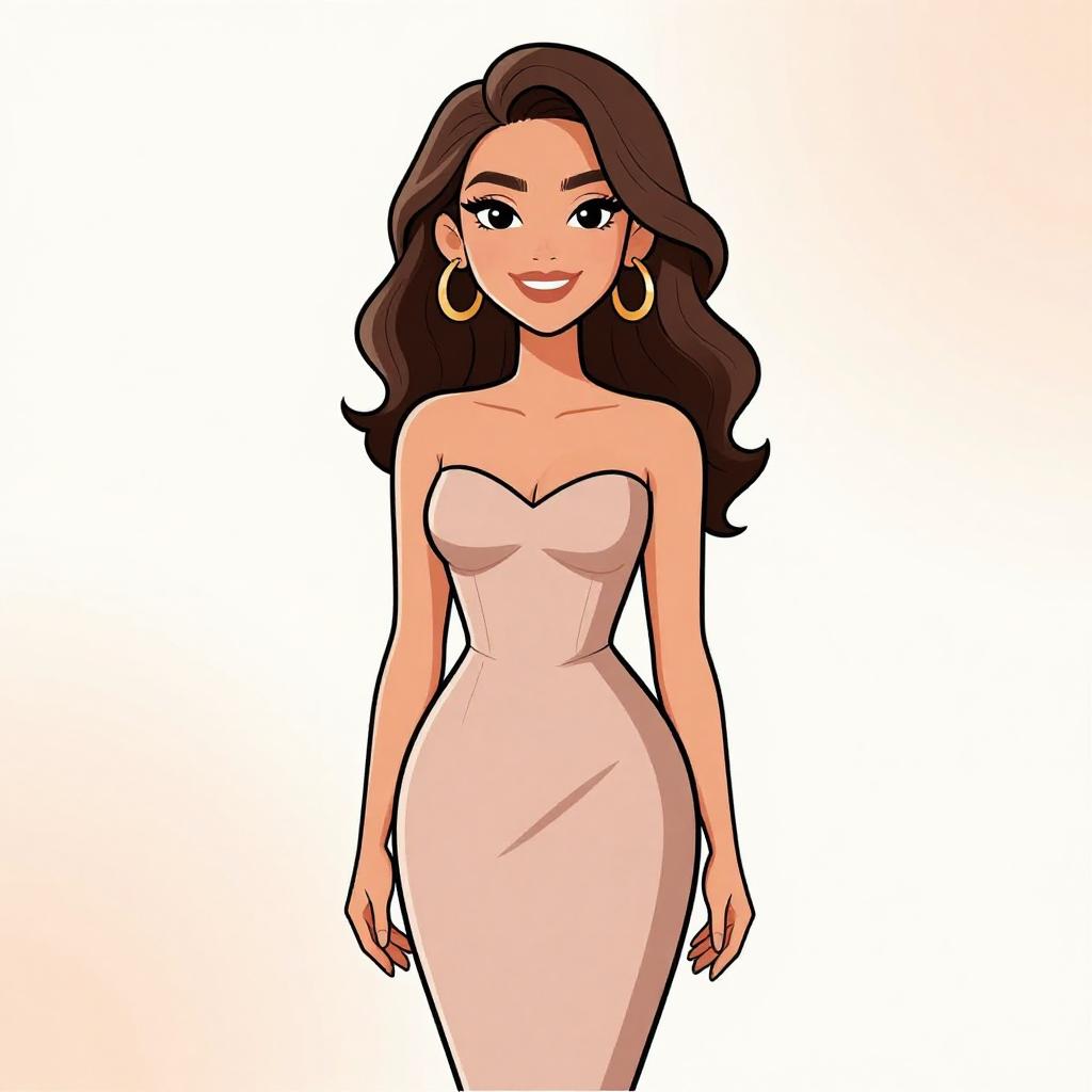Woman with pretty face and pretty hair. smiling Woman, elegant evening style, dusty rose gown with halter neck, keyhole cutout at the chest, cinched waist, high slit in the skirt, floor-length, soft draping, neutral strappy heels, indoor setting with floral arrangements. --sref 1467