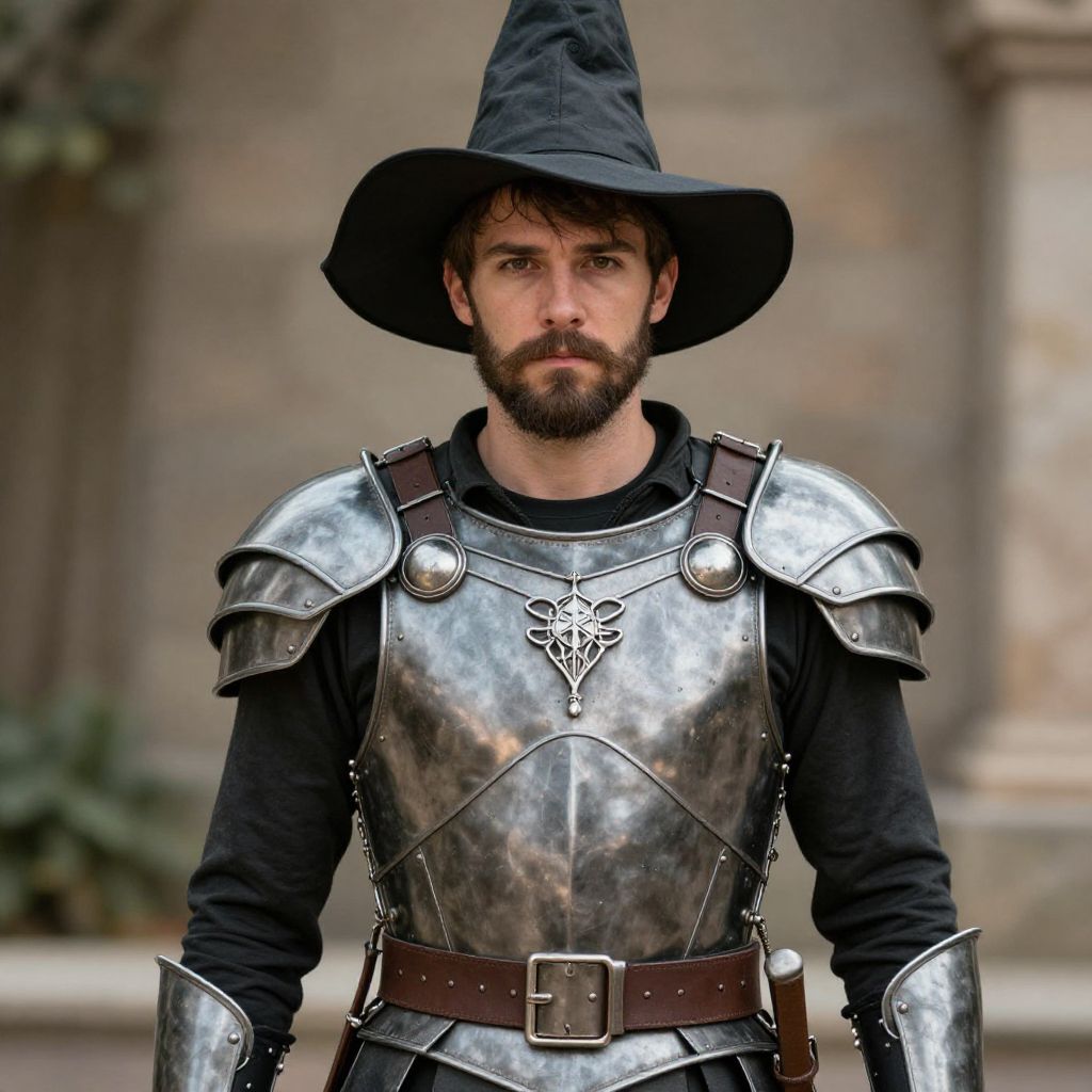 "man strange costume, beard, 1boy, facial hair, male focus, solo, horns, armor, fake horns, gloves, outdoors, blurry background, mustache, standing, blurry, old man Realistic photo of casual sexy person with pretty face"