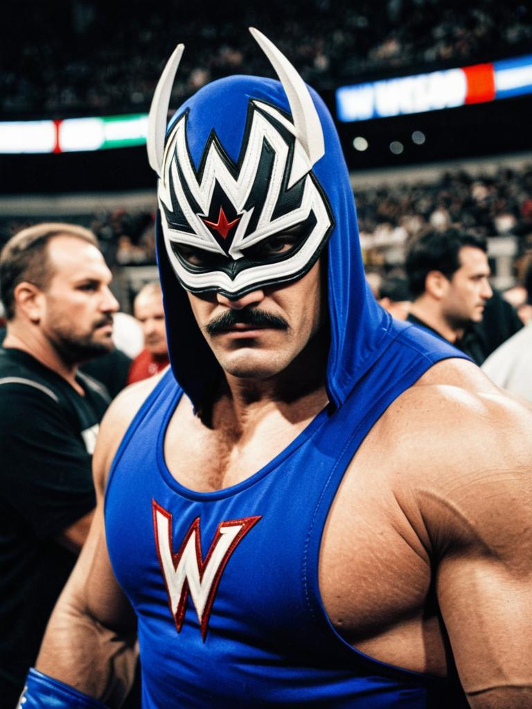 Man in WWE Fighter Costume, candid cosplay portrait at wrestling event